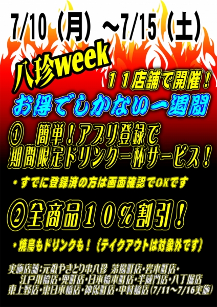 元祖やきとり串八珍でお得なキャンペーン実施します。