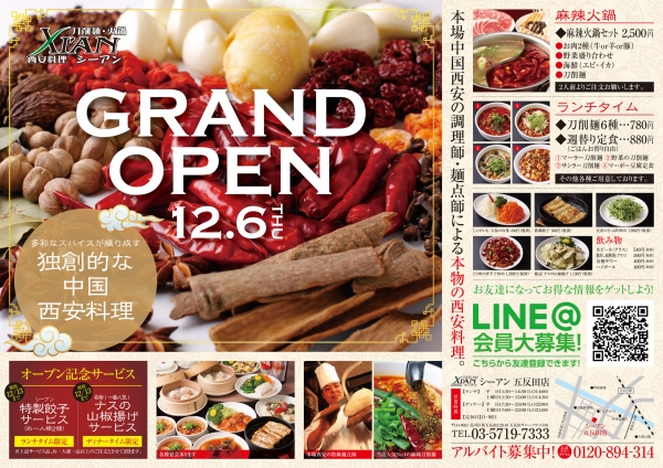 豊創フーズ 株式会社 平成30年12月6日(木)「シーアン五反田店」オープン!