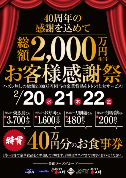 豊創フーズ 株式会社 総額2000万円相当 お客様感謝祭開催!