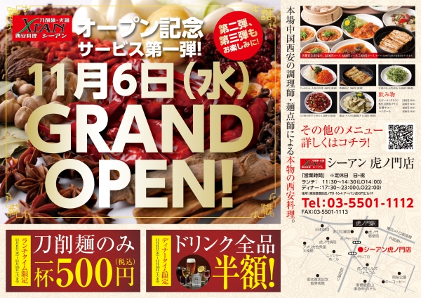 11月6日(水)シーアン虎ノ門店OPEN!