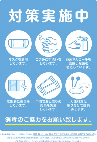 新型コロナウイルス感染拡大防止対策中(串八珍・元祖串八珍・魚八・鮨乃家業態)