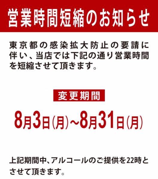 営業時間短縮のお知らせ