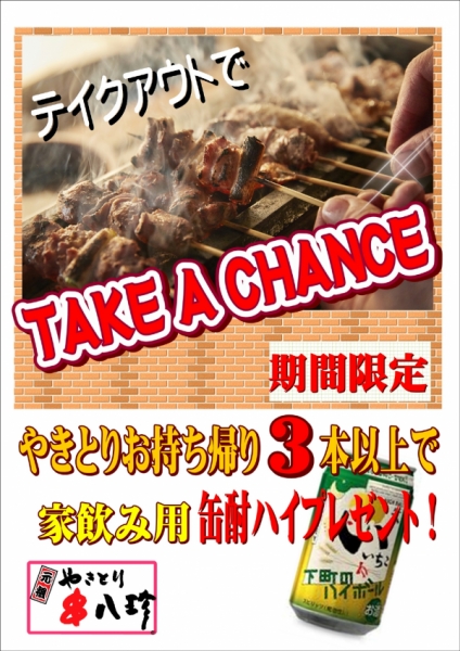 やきとりテイクアウトで缶チューハイプレゼント! 2021-02-03 13:55:49 やきとりテイクアウトで缶チューハイプレゼント!串八珍・元祖串八珍でやきとりテイクアウトの方へ缶チューハイをプレゼントいたします。