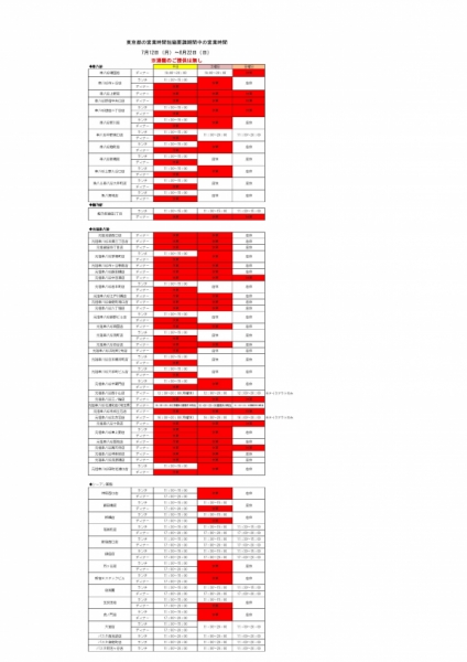 緊急事態宣言中の営業時間のお知らせ(7月12日~8月22日)